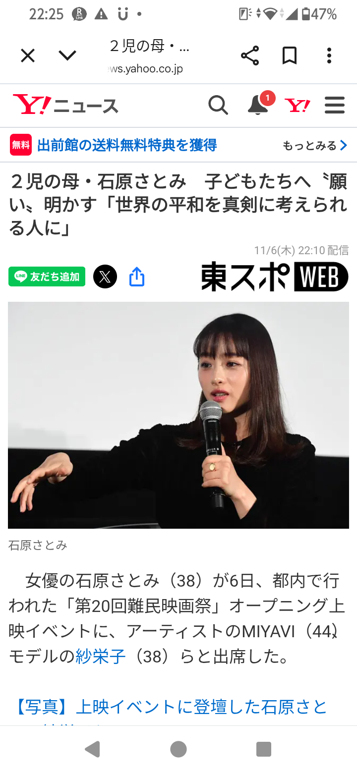 | 石原さとみ「2人の子どもに願うこと…まずは親である私自身が変わりたい」支援活動への思い語る …て行われ、アーティストでUNHCR親善大使も務めるMIYAVI、俳優の石原さとみ、実業家・モデルの紗栄子が登壇。2児の母となった石原が子どもたちに願うことを明かした。 (出典:TOKYO HEADLINE WEB) |