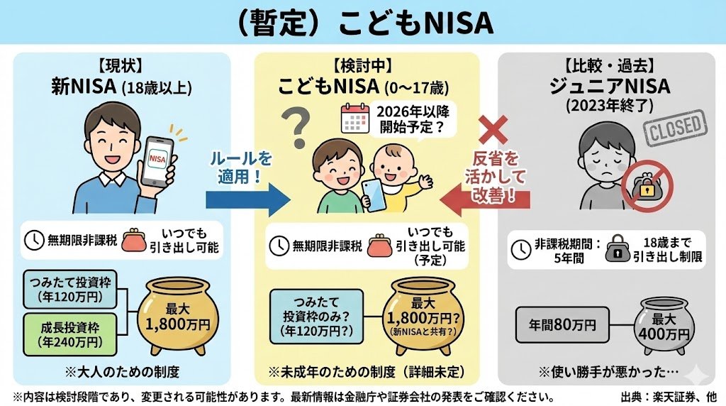@6w6d212月はボーナスや諸々手当も入るから何か買い増ししたいところだけど、NISAの2026年運用も考えなきゃだし、こどもNISAも来そうだし、安易と使っていいものか...😕 とりあえずこどもNISAの開始時期と年枠だけ早々に示してほしいな〜