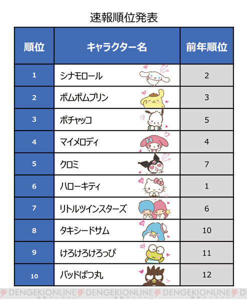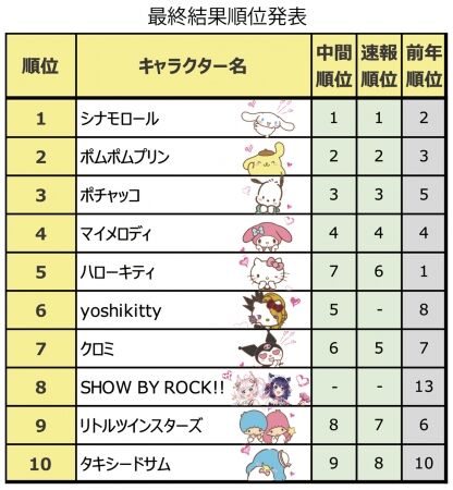 シナモロールの人気はますます勢いを増しているようですね。他のキャラクターも頑張っていると思いますが、なかなか逆転は難しいのかもしれません。