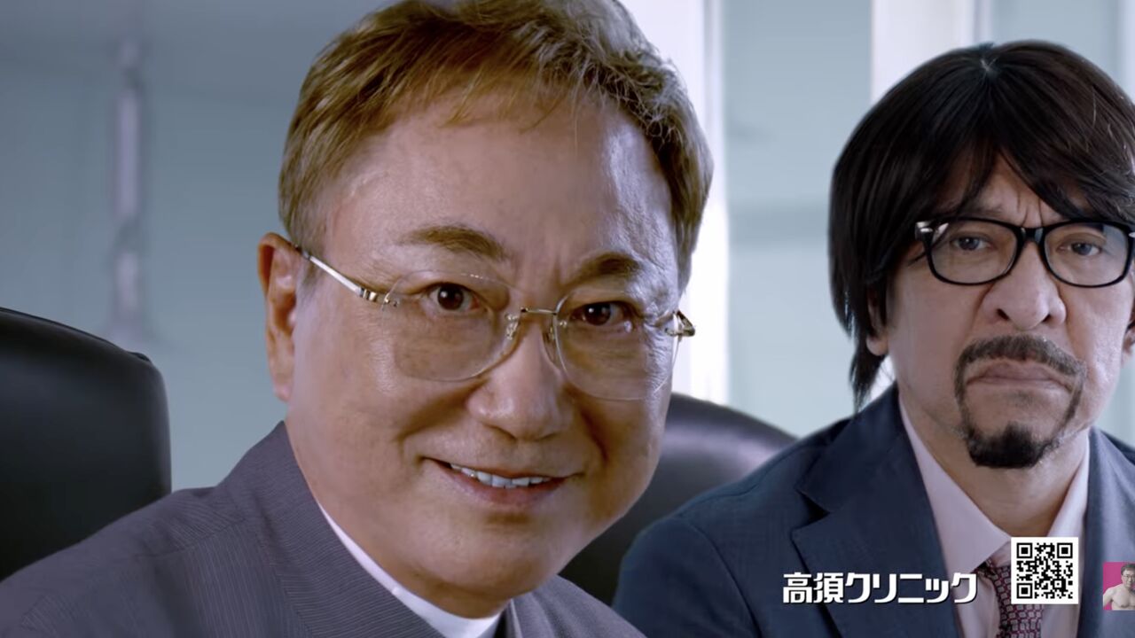 公開されたCMでは、高須氏が外国人たちと会議をしている様子が流れるが、高須氏がアップになると、その左隣に黒髪カツラ、メガネ、ひげ姿でカメラ目線の松本が約2秒映し出される——という構成。無言だが、2年ぶりに松本の新規映像が地上波に映った瞬間だった。