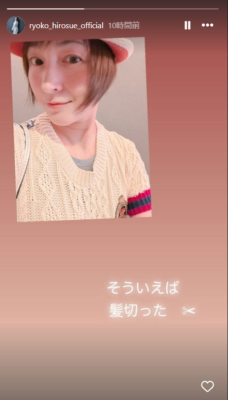 ストーリーズで「そういえば 髪切った」と報告。耳の下まであった髪をやや短くし、ハットをかぶって笑顔の写真をアップした。