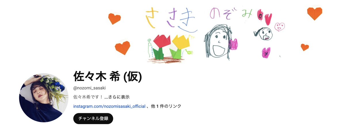 チャンネル内で佐々木は「佐々木希です!右も左も分かっていませんが、この度YouTubeはじめてみました」と報告。「チャンネル名は、まだ何がいいか思い付かず「(仮)」にしています」と涙目の絵文字とともに伝え、「チャンネルアートは息子作」と明かした。