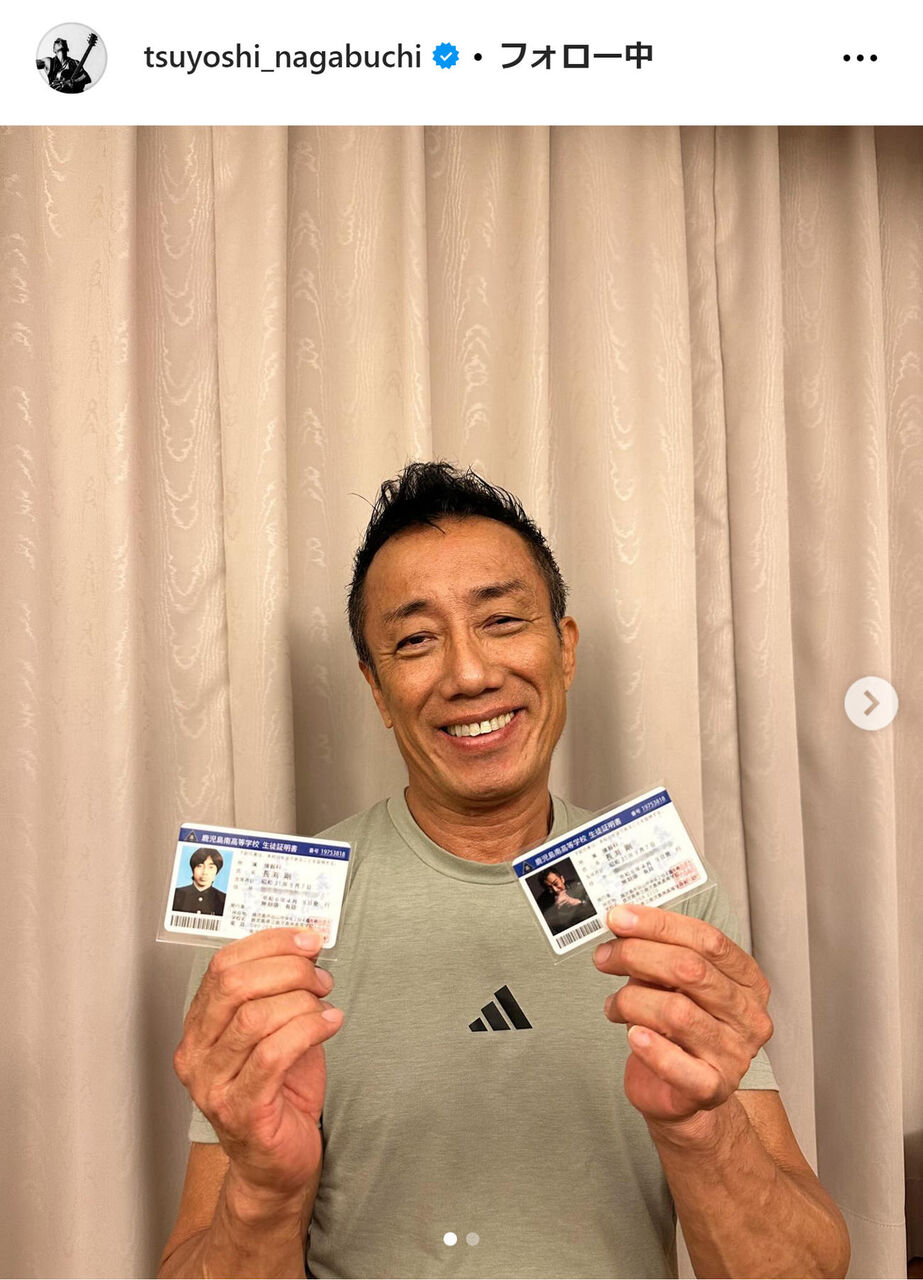 シンガー・ソングライター長渕剛(67)が5日までにインスタグラムを更新。「やったあ 俺にも学生証が届いたあ!!」と、母校の鹿児島県立南高から学生証が届いたと報告した。