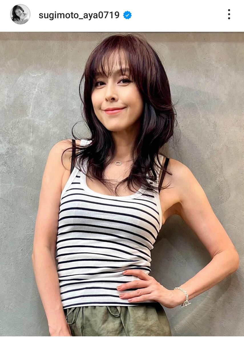 「気分を変えたくて髪を切ってみた」という杉本。「20年来の友人のヘアスタイリスト」に相談してカットしたそうで、前髪を作った若々しいスタイルに変身。「ヘアカットは、気分を変えるのに一番手っ取り早い手段かもしれない 形から変えていくことで、メンタルにいい影響を与えてあげることもできる そうやって自分を鼓舞することも、ときには必要な時がある ヘアスタイルだけでなく、メイクアップやファッションもそう 自分を気分良くいさせてあげる努力って、とても大切」と思いを込めた。