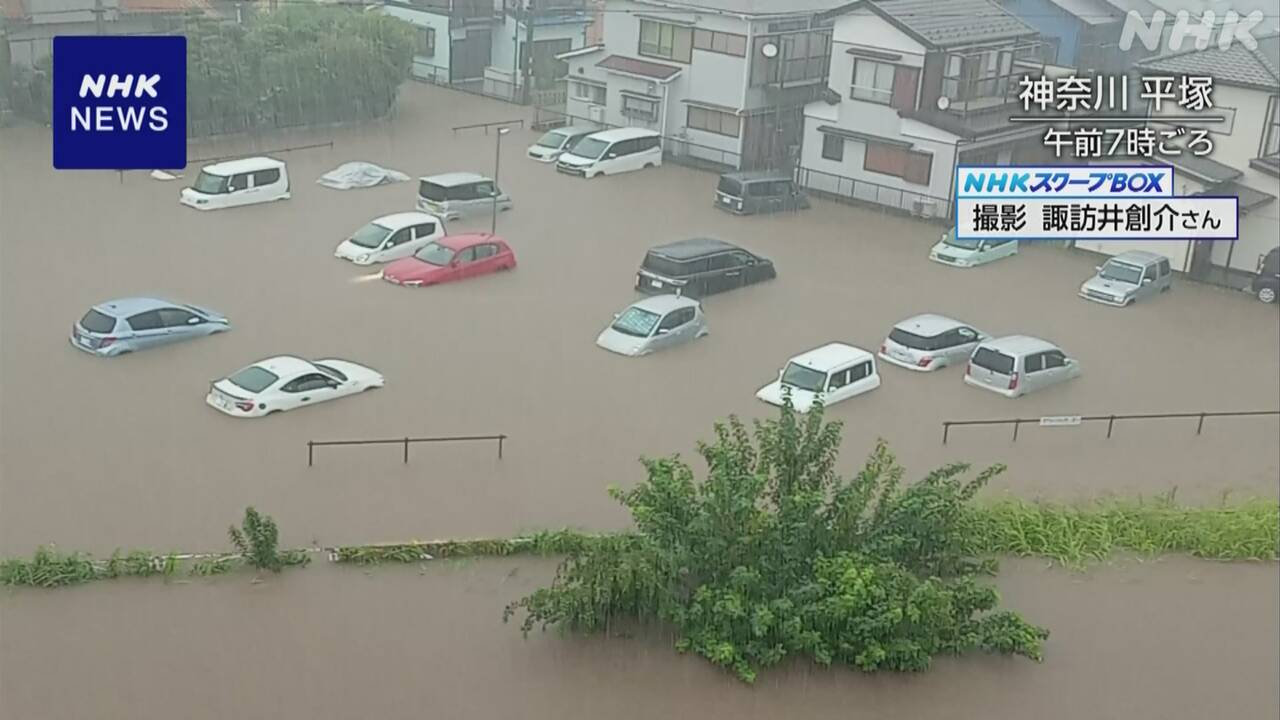 平塚市を管轄する警察や消防によりますと、この大雨の影響で、市内の道路の冠水や床下浸水などの被害、それに車が水につかって立往生しているといった通報が 複数寄せられているということで、情報収集を急いでいるということです。