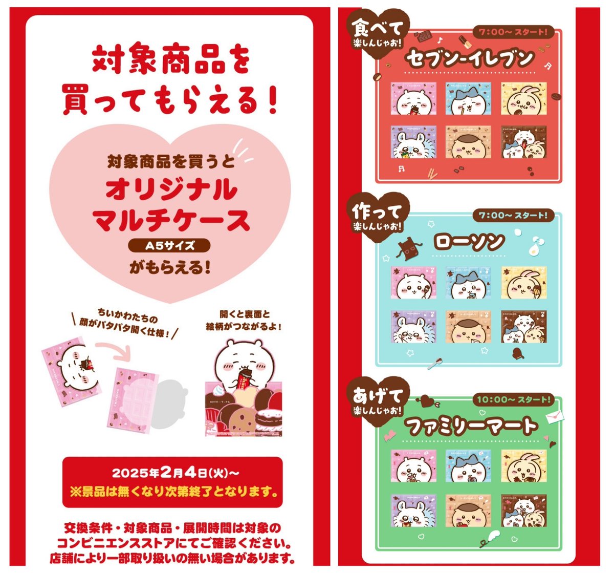 | 【ちいかわ】ローソンでちいかわの可愛いマルチケースをゲット!セブンやファミマでも実施中です。 …、今回のキャンペーンはローソン、セブン-イレブン、ファミリーマートが同時に行っているからです。マルチケースのデザインは「ちいかわ」、「ハチワレ」、「う… (出典:) |