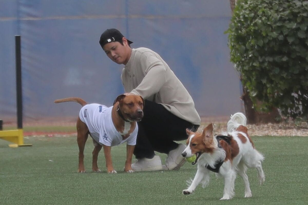 @hochi_andoh#ドジャース #大谷翔平 投手 デコピンと楽しそうに遊んでいました! @Dodgers #ShoheiOhtani #LetsGoDodgers pic.x.com/GLN1zPq20r