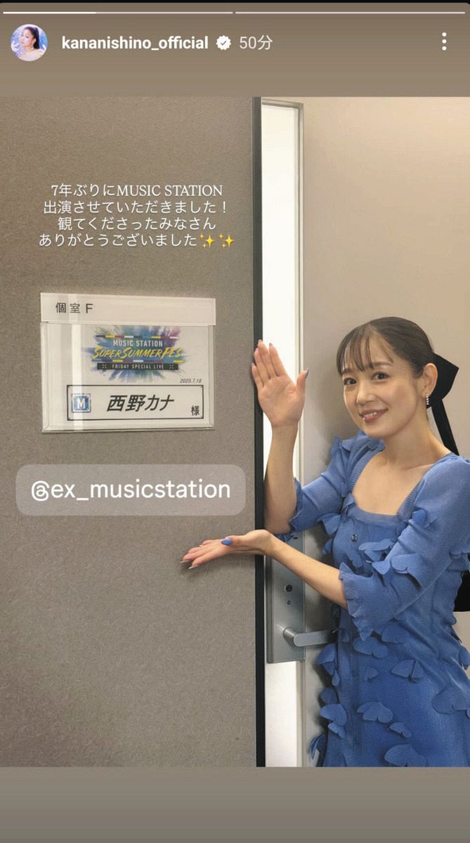 歌手の西野カナさんは7月18日に音楽特番「ミュージックステーション SUPER SUMMER FES2025」(テレビ朝日系)に出演しました。
