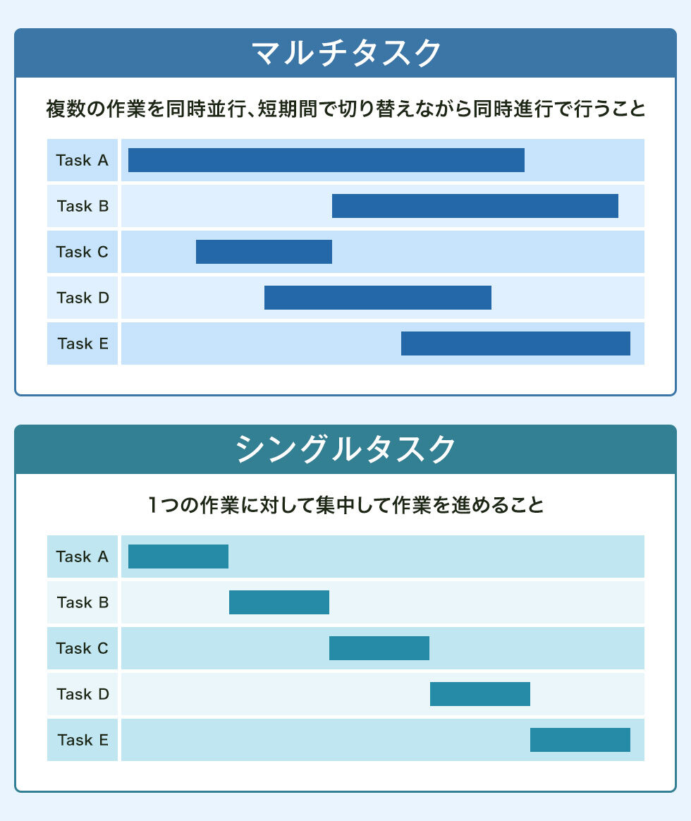 一見、マルチタスクをこなしているように見えるかもしれませんが、ひとつひとつの作業を「スイッチ」(切り替え)している、というほうが正確でしょう。
