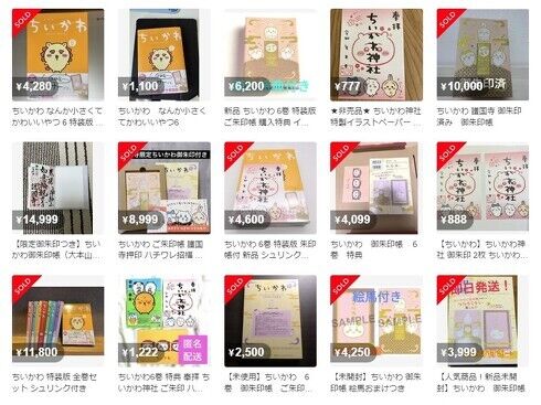 このイベントは、漫画最新6巻の発売を記念したもの。6巻特装版に付属するご朱印帳を持参し、指定の料金を払うことで限定のご朱印「ちいかわ印」を押してもらえる。しかし、一部フリマアプリでご朱印の転売が横行。11日時点でメルカリを見てみると、限定ご朱印入りのご朱印帳が約1万円の価格で取引されているのを確認できる。