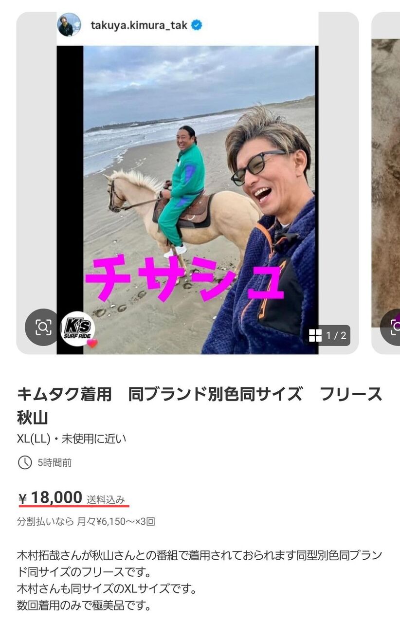 キムタクさん、番組収録でワークマンのフリース(2000円以下)を着用