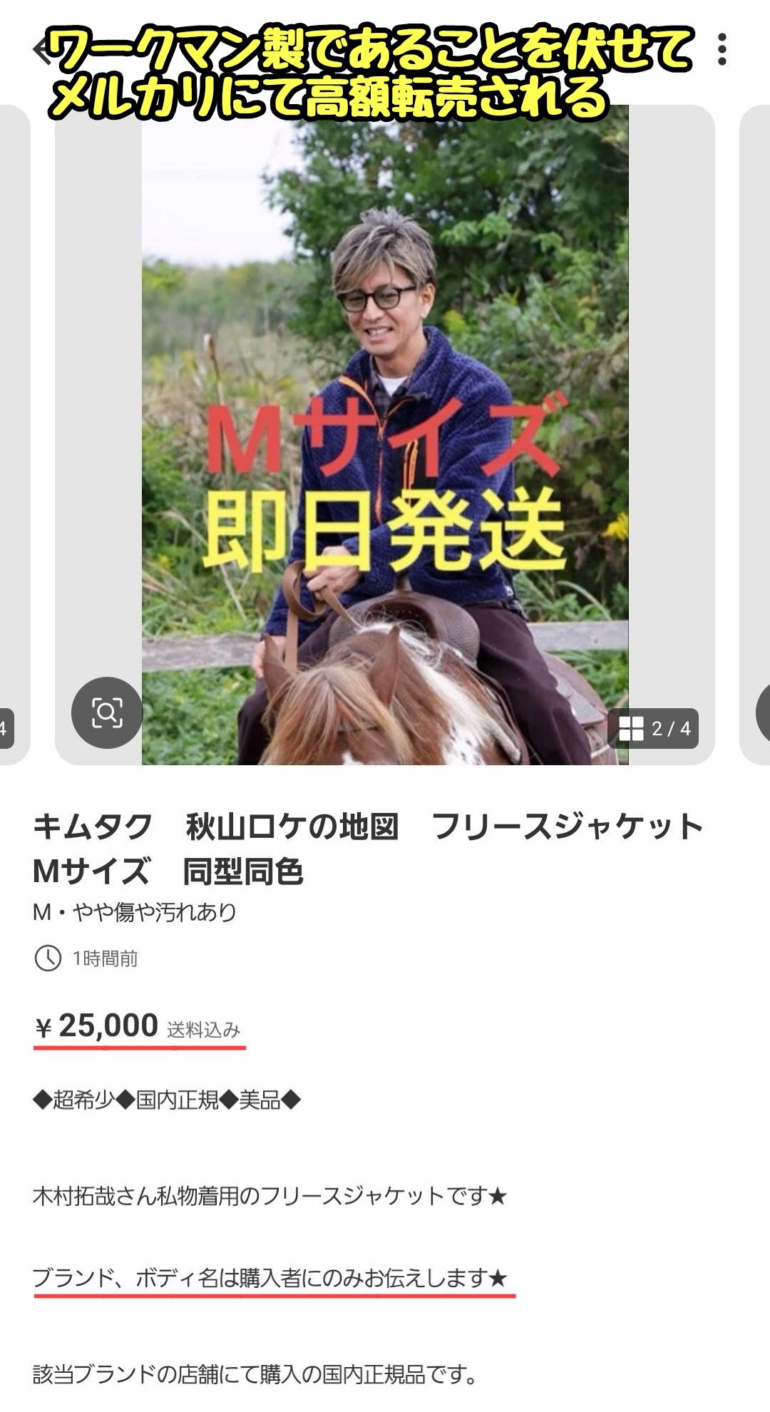 ワークマン製であることをわざと伏せて、強気な値段で高額販売する転売ヤーがメルカリに出現(今ここ)