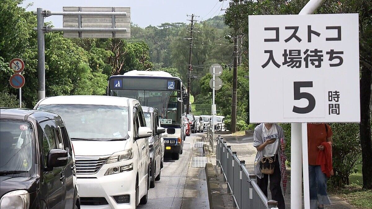 開店に伴い、南城市の店舗周辺では24日早朝から渋滞が発生している。南城市はコストコ開店に伴い、期間限定の交通情報発信サイトで渋滞情報をリアルタイムで更新する。